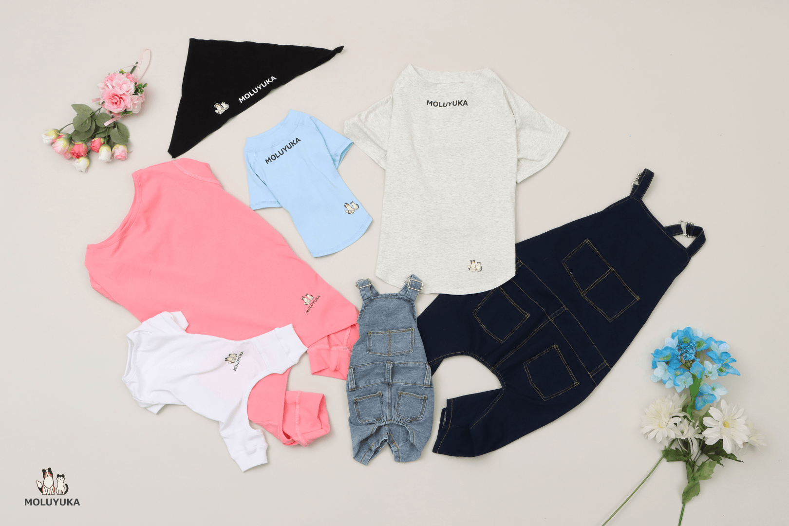 わんちゃん・ねこちゃんは全身が毛で覆われているため、静電気が発生し皮膚が乾燥しやすい特徴があります。 そのため、手触りが良く静電気が発生しにくい高級生地をMOLUYUKAが厳選しました。